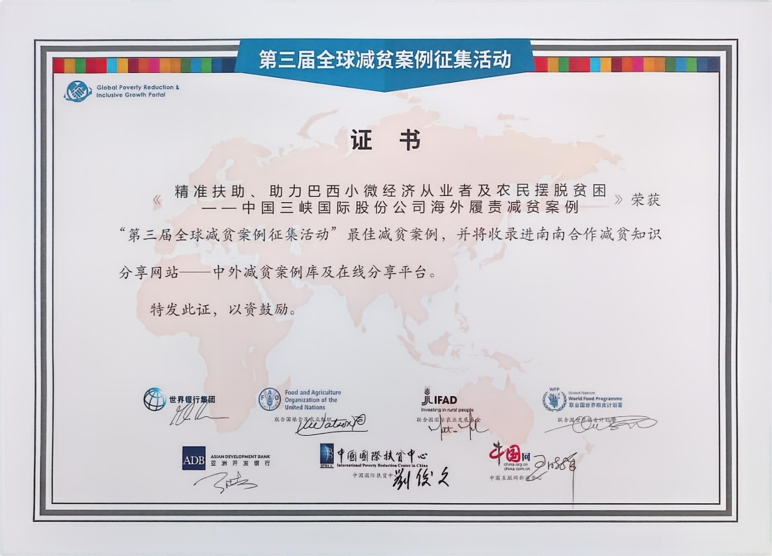 同年,三峡巴西公司“精准扶助小微经济与农民减贫项目”再获第三届全球最佳减贫案例。该项目联合当地机构推出创收创业试点与可持续旅游业创新挑战,已连续实施5年,涉及2座水电站和2个新能源项目所在地。此次案例,延续了“因地制宜、授人以渔”的核心理念,不仅帮助当地农民和小微企业家脱贫脱困,还着重创新经济模式,赋能社区转型升级与可持续发展,进一步深化了清洁能源项目与社区减贫的协同发展模式。相关实践于2024年G20峰会期间登上《人民日报》版面。