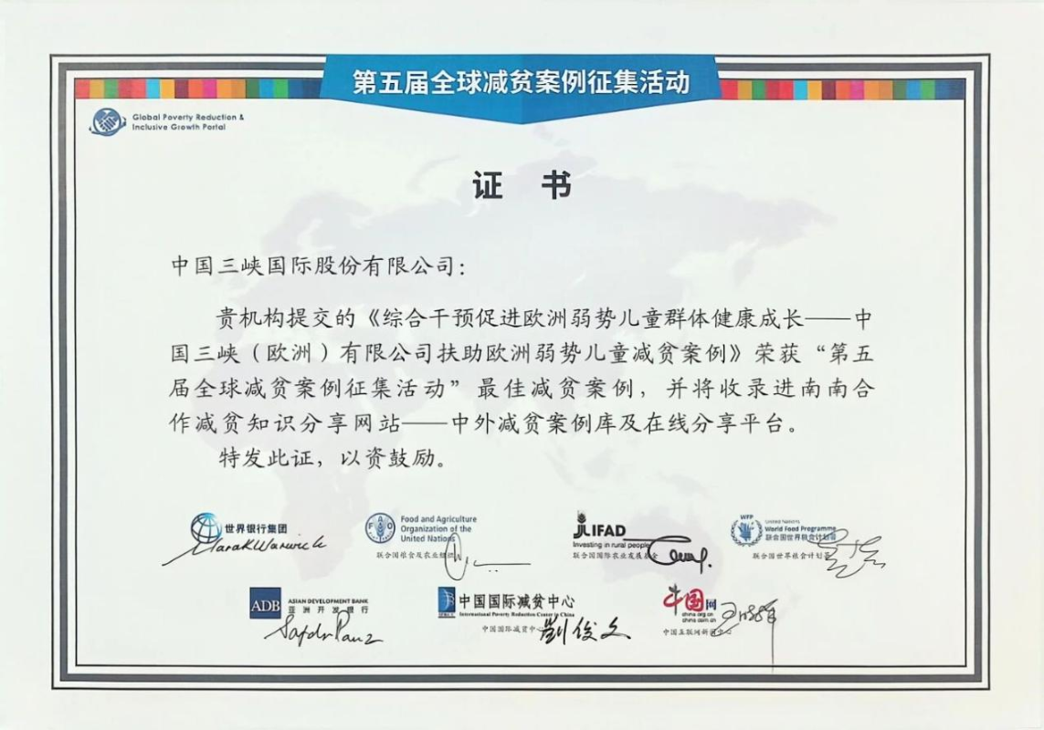 2024年,三峡欧洲公司“扶助欧洲弱势儿童项目”再次成功入选第五届全球最佳减贫案例。三峡欧洲公司携手专业公益机构,发起西班牙儿童扶贫公益等项目,该项目主要针对6-12岁儿童,通过开展工作坊、体育活动等形式,向儿童、家庭、社区等传播积极的心理教育观念,倡导健康的生活方式,打破因贫困与不健康生活习惯交织形成的代际恶性循环。同时为当地患病、贫困、超重和肥胖等弱势儿童提供针对性的教育课程,帮助他们克服困难,鼓励他们重拾信心、更好融入社会,累计超5000人获益。