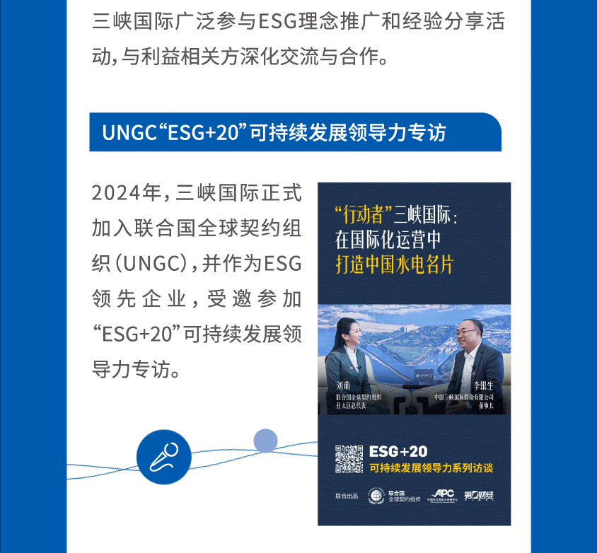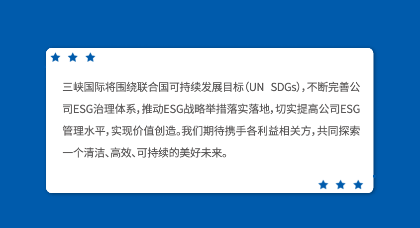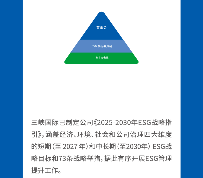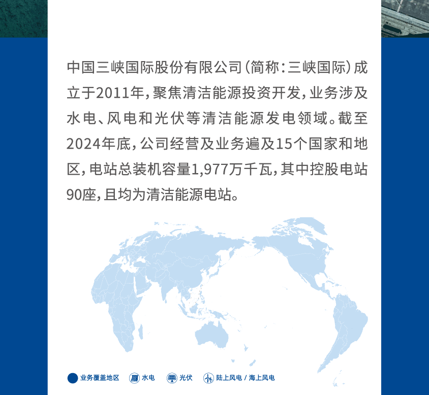 近日,三峡国际正式发布中文版和英文版《2024年度环境、社会及管治(ESG)报告》(下称《报告》),系统呈现公司在2024年的ESG管理举措和绩效表现,全面展示公司聚焦清洁能源投资开发、坚持可持续发展理念的实践成果。